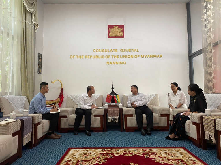 緬甸駐南寧總領(lǐng)事梭岱南對我司的到訪表示熱烈的歡迎,同時對我司搭建中國—東盟國際教育服務(wù)平臺,促進中緬兩國的教育發(fā)展表示高度的認可,談到中緬兩國建交70周年以來,兩國有著傳統(tǒng)友好關(guān)系的鄰邦,經(jīng)貿(mào)、文化、教育、旅游等方面的交流與合作不斷深化,成效顯著,并表示我司在發(fā)展教育合作交流上,需要總領(lǐng)事館幫助的地方,總領(lǐng)事館將鼎力相助,齊心協(xié)力為兩國教育交流、國家繁榮發(fā)展而努力,續(xù)寫千年胞波情誼。